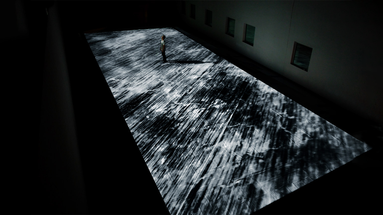 An attempt to visualize the random motion of particles suspended in fluid with the aid of simulation software, a phenomenon known as Brownian motion. The movement and collision of the particles is then used to generate the imagery and sound.